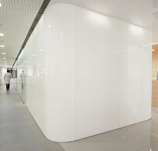 长沙蓝翔企业形象与互动有限公司的金属墙板隔断基于创新的夹紧龙骨打造。尤其适用于医疗健康领域和实验室、办公室。钢制板材和玻璃元素的搭配不仅提高墙体的通透性,而且安装和拆卸极其简单,各种管线可内藏其中,便于检修。同时具有坚固的墙体和易清洁的表面。通过严苛的盐雾试验以证明在酸碱环境下的耐久度。并且可以进行抗菌喷涂,创造洁净、安全的人性化空间。